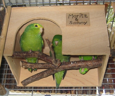 Diese Idee war einfach Spitze... jetzt haben die Kathis im Schlafhaus noch mehr (Sitz-)Platz. Sammy liebt es, faul wie er ist, auf der Schräge der Astgabel sein Bäuchlein abzulegen... schade, dass ich davon (noch) kein Foto habe... aber ich arbeite dran *grins*
